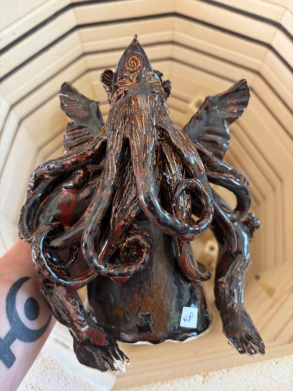 Large Cthulhu Sculpture in Ancient Jasper Glaze